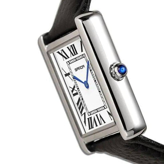 Square Timepiece in Stainless Steel and Black Leather | Solstice